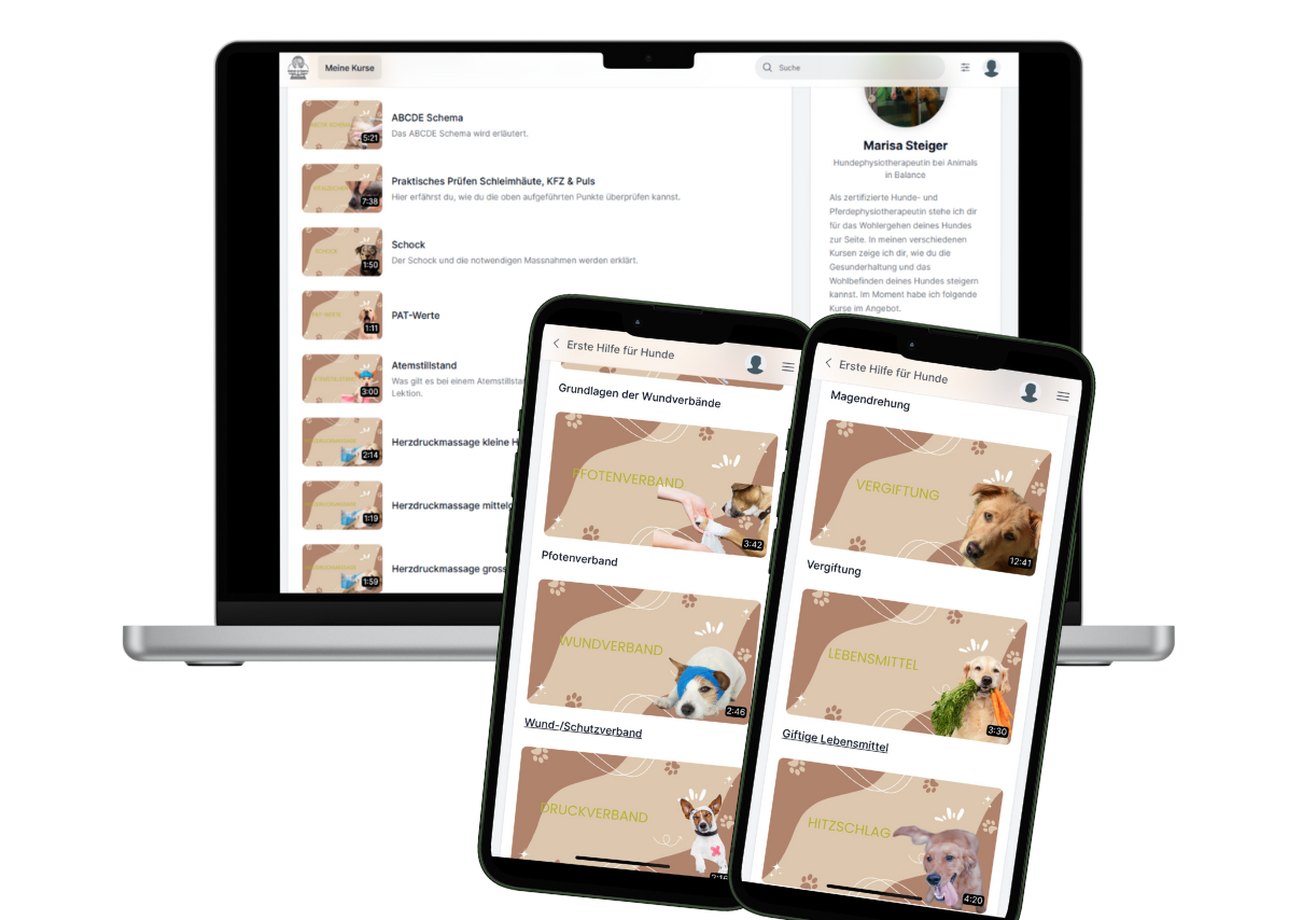 Ja, vorallem kannst du den Kurs bequem per App auf deinem Handy schauen und gleichzeitig die Griffe bei deinem Hund üben